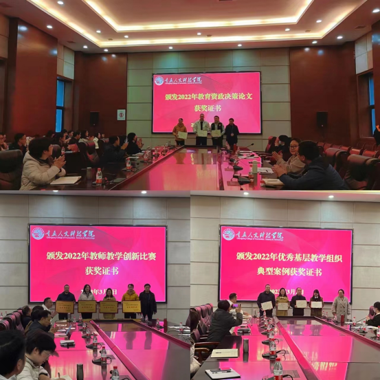 本次会议还为beat365在2022年优秀基层教学组织典型案例、教师教学创新比赛及教育资政决策论文评选活动获奖的单位和老师颁发了证书。