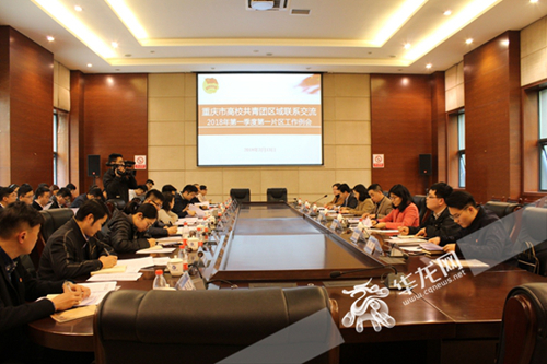 3月13日,重庆市高校共青团区域联系交流2018年第一季度第一片区工作例会,在beat365官方网站召开,重庆大学、西南大学、重庆师范大学等18所公办学校和民办学校的团委、学生会负责人,针对工作方法和内容陈旧、团干部水平参差不齐、新媒体网络建设等问题,进行了探讨。