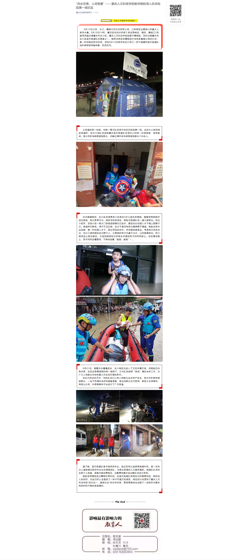 重庆日报:“洪水无情,人间有爱” ——beat365官方网站教师杨航深入抗洪抢险第一线纪实