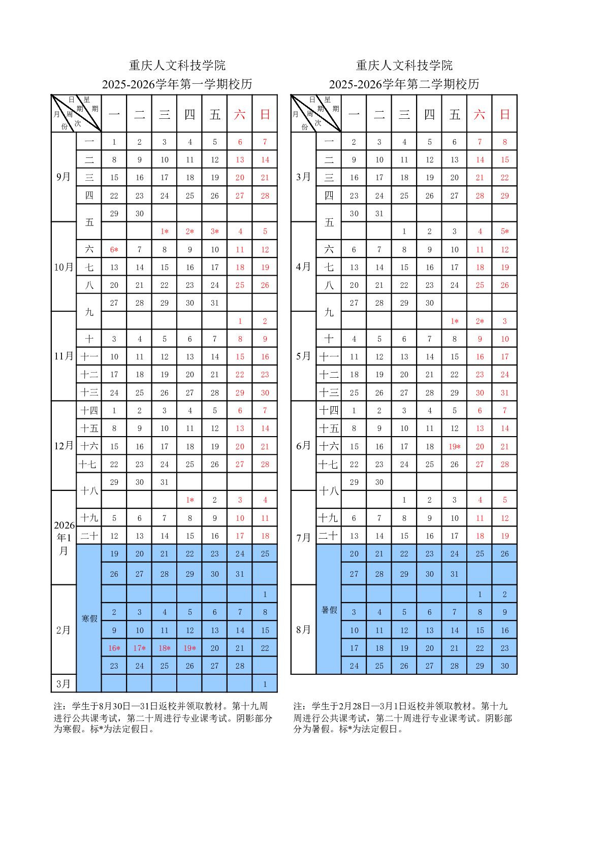 beat365官方网站2025-2026学年校历