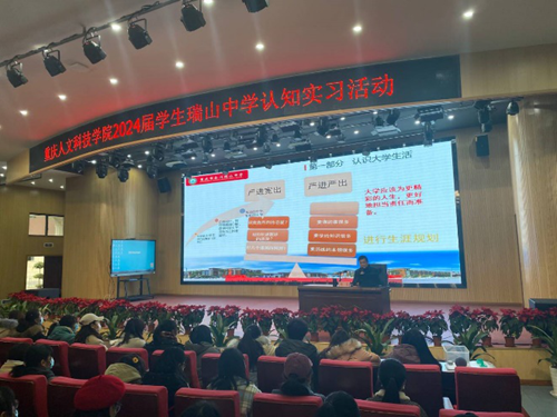 12月23日,外国语学院2024届371名英语专业师范生到合川瑞山中学开展认知实习。瑞山中学党委书记、校长邹泉和教科处主任黄勇做精彩讲座,副校长黄小玲出席见面会。学院党总支书记助理杨成松、英语专业高年级教研室主任陈琳等全程参会。