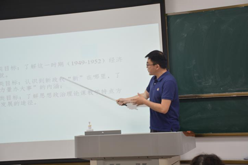 此次比赛由各系部推选出的青年教师进行评比,形势与政策教学系教师李博文的“认清台独本质与危害”,马克思主义基本原理教学系教师张雅妍的“否定之否定规律”,中国近现代史纲要教学系教师冯懿的“国民经济恢复”,毛泽东思想和中国特色社会主义理论体系概论教学系教师李衫衫的“坚定文化自信,繁荣发展社会主义文化”、教师孙碧晨的“新时代社会主义主要矛盾”和思想道德与法治教学系教师覃德强的“理想的内涵与作用”,都围绕自身系部教学方向,从教学内容、教学方式方法以及授课台风、肢体语言等方面都做了精心的准备,得到了现场评委和观众的充分肯定。在比赛过程中,青年教师们紧扣教学目标,熟练运用多媒体,用深入浅出的方式对课程内容进行步步推进,充分展现了学校思政课教师昂扬向上的精神面貌和扎实的教学基本功。