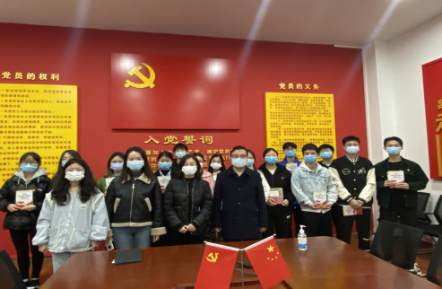 党总支书记黄代蓥、副书记王文婷和学生第三党支部委员出席了本次活动。首先由支部书记蒋金津老师向全体党员同志介绍过“政治生日”的目的和意义,希望全体党员同志铭记党员的责任和义务,发挥党员的模范作用。随后,黄代蓥书记为全体党员送上殷切寄语,勉励大家提高政治站位,坚定理想信念,践行入党初心。在疫情防控期间,党员同志更应该发挥学生群体中的中坚力量,协助和组织同学们积极配合、落实疫情防控政策。最后,黄代蓥书记和王文婷书记为所有党员同志送上“政治生日”贺卡和书籍,通过庄严的仪式,让大家时刻铭记作为一名共产党员是大家的“第一身份”。