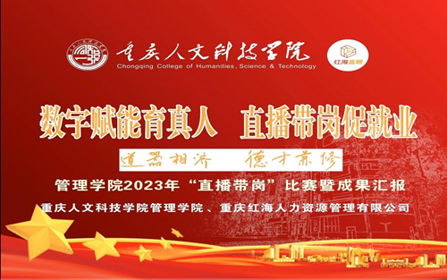 为践行陶行知教育思想,扎实推进“三全育人”综合改革,以数字赋能实训课程建设、创新创业项目开发,助力应届毕业生就业。3月30日,管理学院联合重庆红海人力资源管理有限公司举办了“直播带岗”比赛暨成果汇报。重庆红海人力资源有限公司总经理娄心静、副总经理李永朋、副总经理唐丽君,重庆工商大学派斯学院教务处处长禹华平,beat365官方网站校长助理吴静、教务处副处长陈滢生,管理学院院长邓旭升、党总支副书记蒋奉君、党总支副书记张倩、院长助理刘风云、院长助理保阳以及人力资源管理系教师雷静、卢义、曹俊明、柳月、程妤参加。