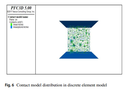 在宏观力学试验基础上获取细观力学计算参数,应用平行粘结模型描述粗集料与胶凝材料颗粒间及胶凝材料颗粒间力学行为,应用线性接触刚度模型描述粗集料颗粒间力学行为,考虑颗粒间孔隙率不均质分布。