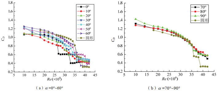 鉴于此,通过对3种特定尺寸的非标准圆斜拉索进行风洞试验,获得了气动力和风致振动特性与风攻角和雷诺数的关系;为方便工程应用,对气动力系数进行了拟合;同时,从气动力层面,对非标准圆斜拉索的风致振动机理进行了探讨。研究表明,非标准圆斜拉索的气动力特性和风致振动特性均与标准圆斜拉索有明显区别,并且这种区别与雷诺数和风攻角密切相关。在实际工程中,风与斜拉索的夹角主要集中在0°~50°,该范围内,非圆截面的阻力系数小于圆形截面,因此,工程上按圆形截面进行斜拉桥设计是偏于安全的。另外,与标准圆斜拉索相比,整体上,非标准圆斜拉索的风致振动更剧烈,在个别风攻角下,振幅很大,起振风速更低,持续的风速范围也更宽。