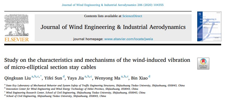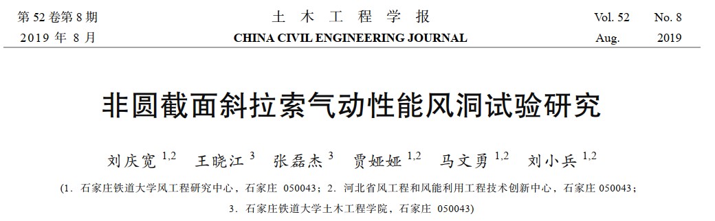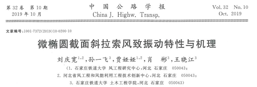 金年会刘庆宽教授作为第一作者和通讯作者,在国际学术期刊《Journal of Wind Engineering and Industrial Aerodynamics》(中科院大类二区、小类一区),和国内学术期刊《土木工程学报》、《中国公路学报》上发表系列科研论文“Study on characteristics and mechanisms of the wind-induced vibration of micro-elliptical section stay cables”、“非圆截面斜拉索气动性能风洞试验研究”、“微椭圆截面斜拉索风致振动特性与机理”。上述论文系统研究了三种非标准圆斜拉索的气动力特性、风致振动特性和振动的深层机理。