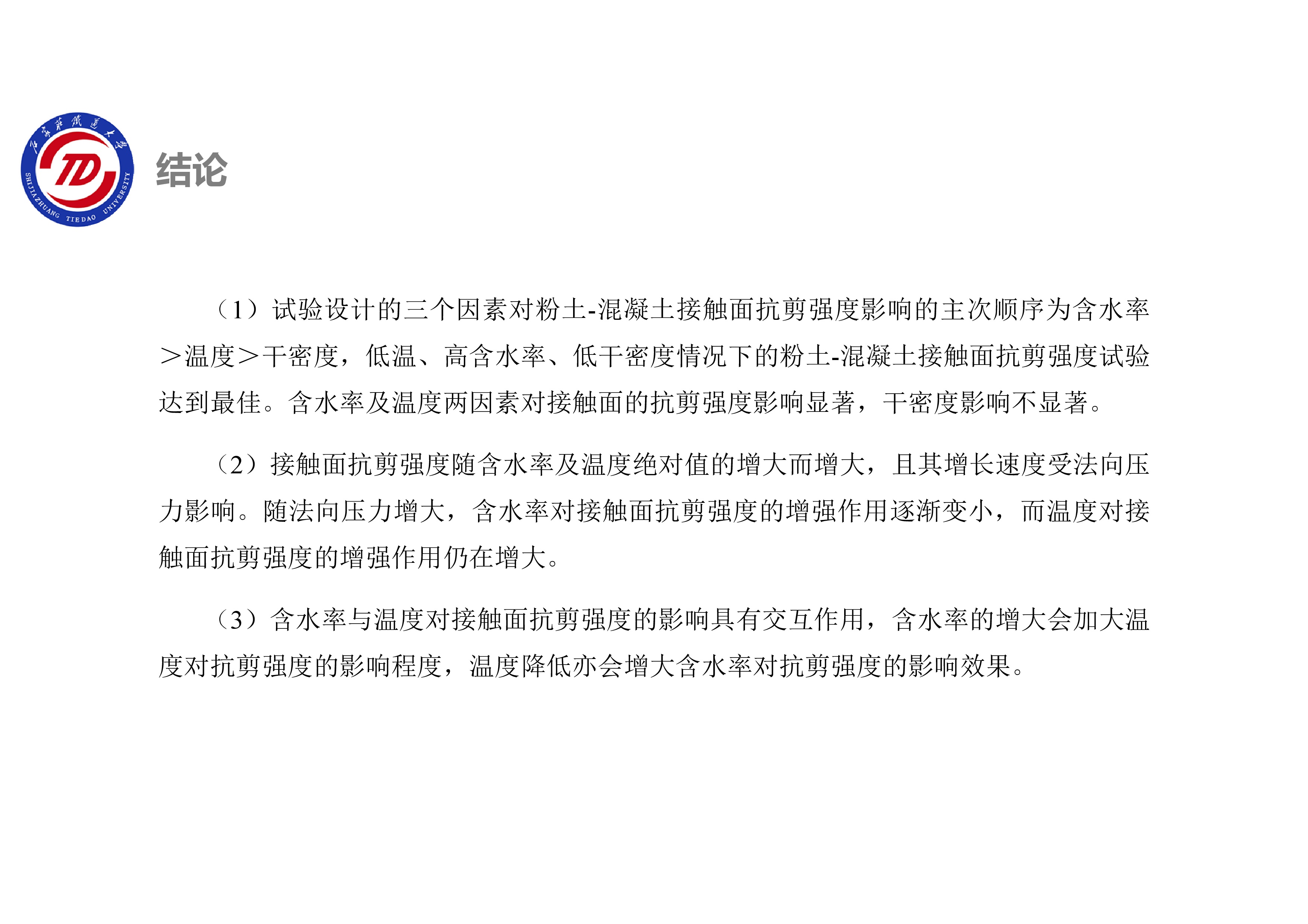 (3)含水率与温度对接触面抗剪强度的影响具有交互作用,含水率的增大会加大温度对抗剪强度的影响程度,温度降低亦会增大含水率对抗剪强度的影响效果。
