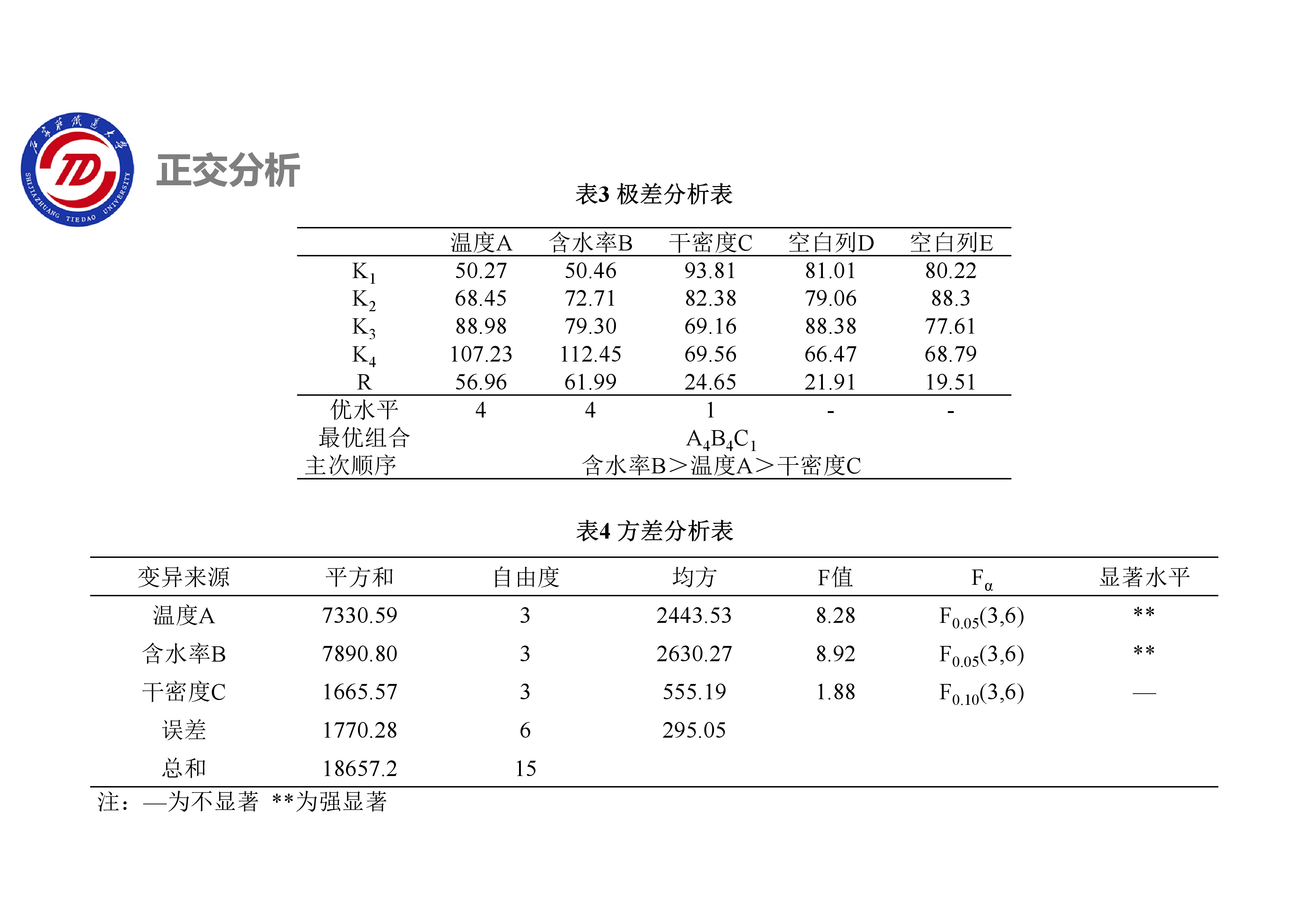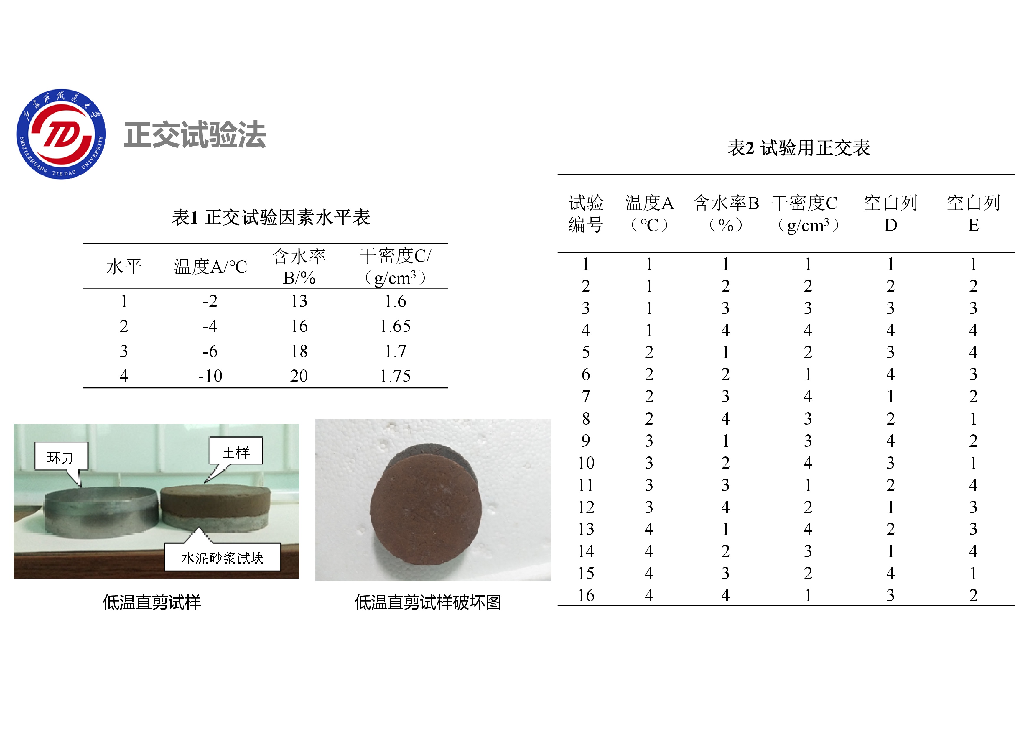 在分析冻土-构筑物界面冻结强度主要影响因素的方法上,本文采用了正交试验法,定量分析了工程中常见因素对接触面冻结强度的影响程度,明确了各影响因素的主次顺序,从而为解释接触面冻结强度的形成及破坏机制提供了依据。