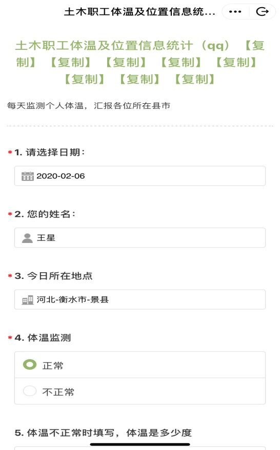 1.早上醒来第一件事是先将副院长安排的问卷星完成,将自己的身体状况、所在位置以及是否有出行计划进行上报,让学院知晓自己各方面的情况。