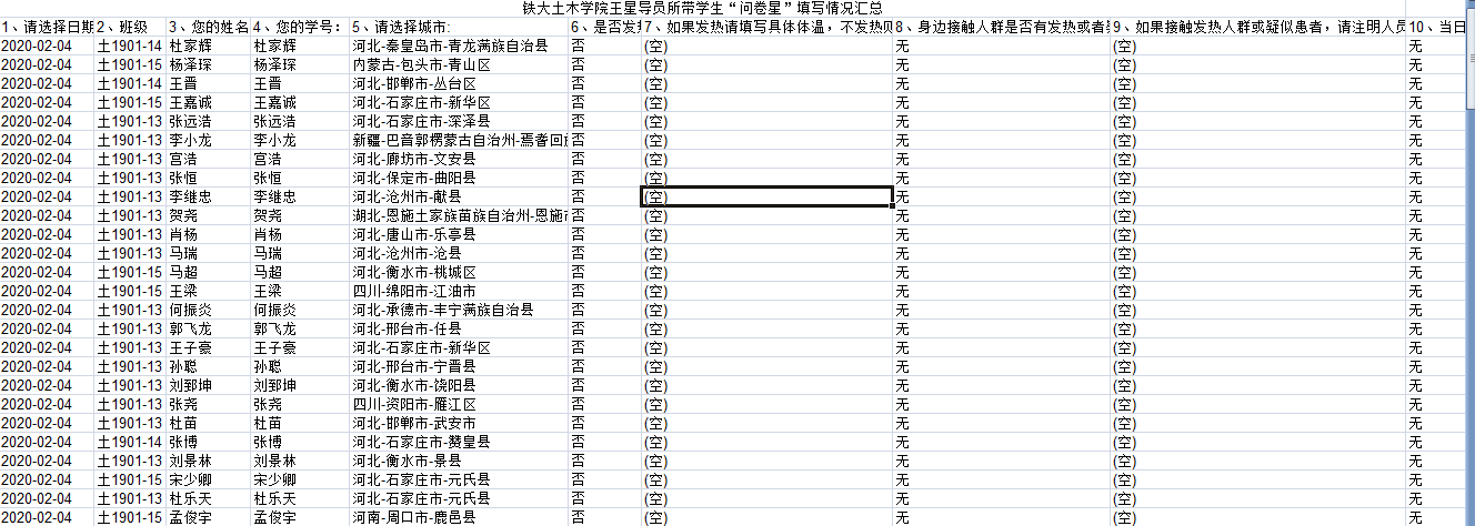 6.下午将学生的调查问卷情况导出,查看学生问卷完成度以及问卷中学生的各方面情况。若完成度达不到百分之百,马上让班委清查人数,并要求学生马上进行填写,确保问卷全面覆盖,全体学生没有特殊情况,并按照日期进行留存。