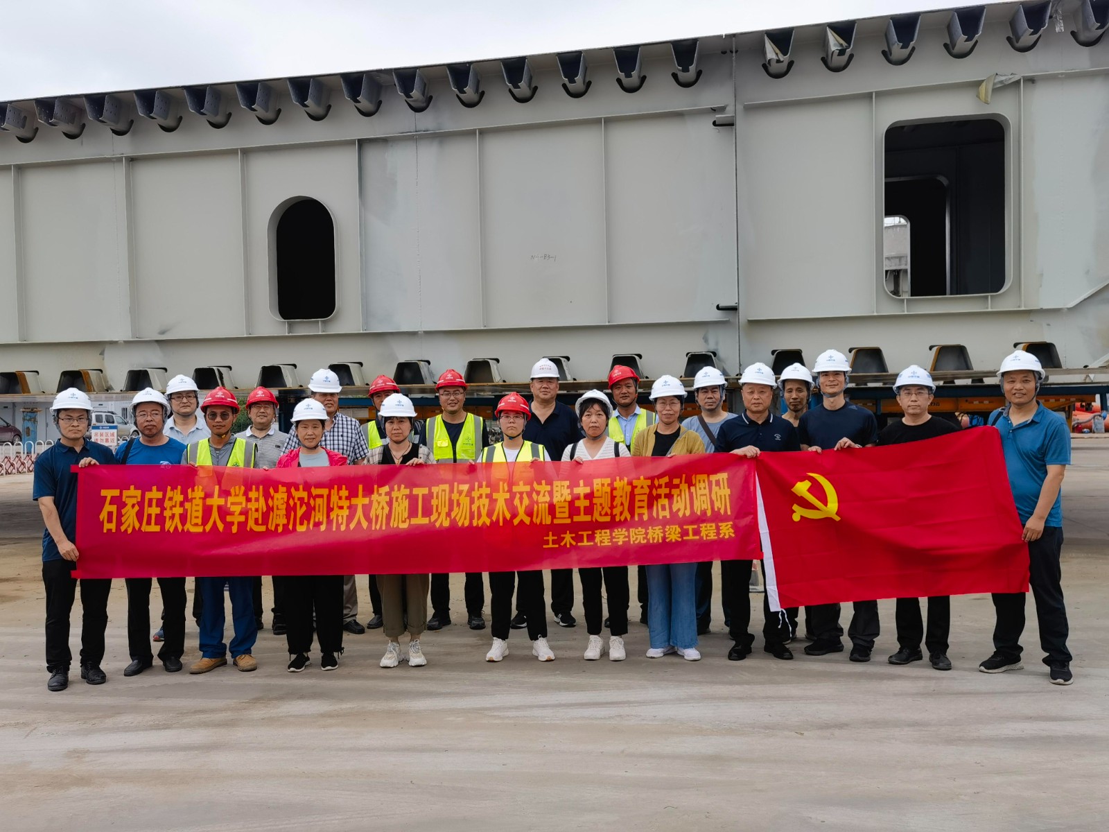 活动中,支部党员分别走进钢结构加工和拼装场、滹沱河特大桥主桥施工现场、滹沱河特大桥引桥施工现场,调研教学、科研成果如何更好地服务交通基础设施,深入了解施工企业的技术优势以及桥梁施工一线遇到的实际工程问题,通过现场观摩、视频展示、技术交流等方式,老师们深切感受到桥梁工程方向的教学、科研,特别是人才培养需要创新模式,努力实现与现场工程问题无缝对接,同时施工现场人员也提出针对施工中遇到的工程难题亟须借助高校教师的智力优势联合攻关解决。