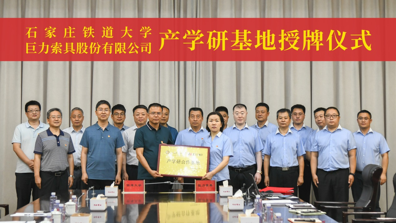 为推进主题教育走深走实,继续加强金年会官网与巨力索具股份有限公司间校企产学研合作,探索党建共建新模式,7月4日,金年会官网党委书记韩东海、副院长王长瑞、张耀辉,桥梁工程系教授向敏、李运生等一行8人组成调研组,赴巨力索具股份有限公司走访调研,就继续加强校企产学研合作,探索党建共建新模式,扎实推进主题教育深入开展进行座谈交流,并举行了战略框架协议签字仪式暨JINNIAN金年会产学研基地授牌仪式。