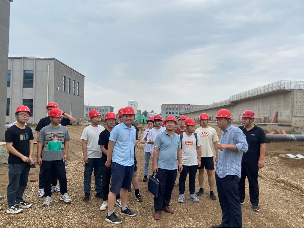 首先,在河北省水利工程局集团有限公司第五分公司高翔处长及水厂相关技术人员的引领和讲解下,党支部师生参观了水厂调压阀室及格栅间、混合反应沉淀池及清水池、砂滤站、送水泵房及10KV变配电间、排水排泥调节池、污泥浓缩间、污泥脱水机房、综合加药间等建(构)筑物,学习了解了工程特点、施工管理新理念、新兴技术应用等情况。
