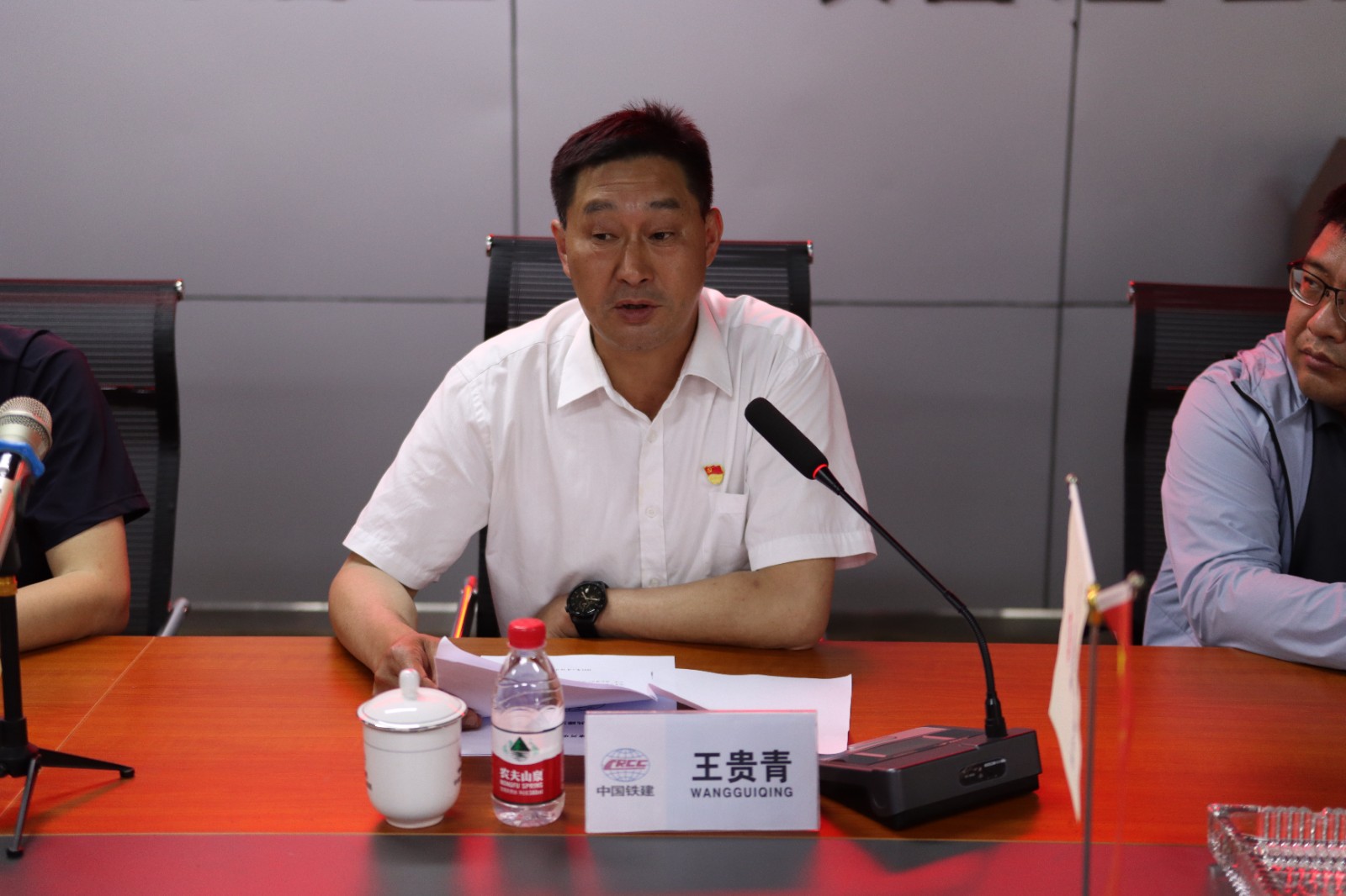 座谈会上项目专职副书记王贵青介绍项目情况