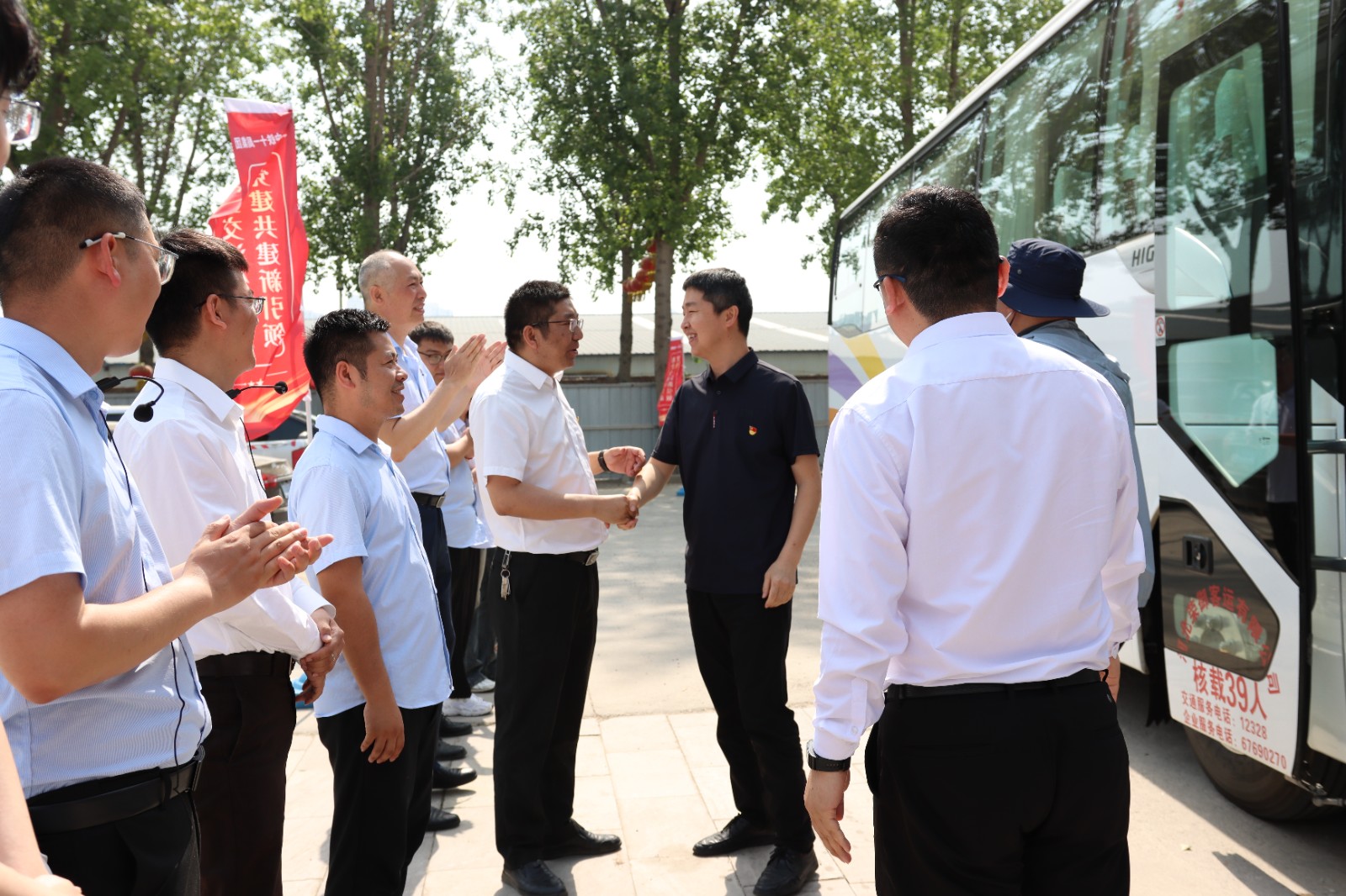 中铁十一局集团第一工程有限公司和JINNIAN金年会是党建共建单位,也是产学研合作基地建设单位,为强化党纪学习,发挥党建引领作用,5月18日,金年会官网党委副书记、副院长王长瑞带领2021级32个本科和研究生班级学生代表及教师代表60人赴中铁十一局集团第一工程有限公司定州片区项目,共同开展了以“党建共建新引领,校企交流促共赢”为主题的校企访学交流活动。