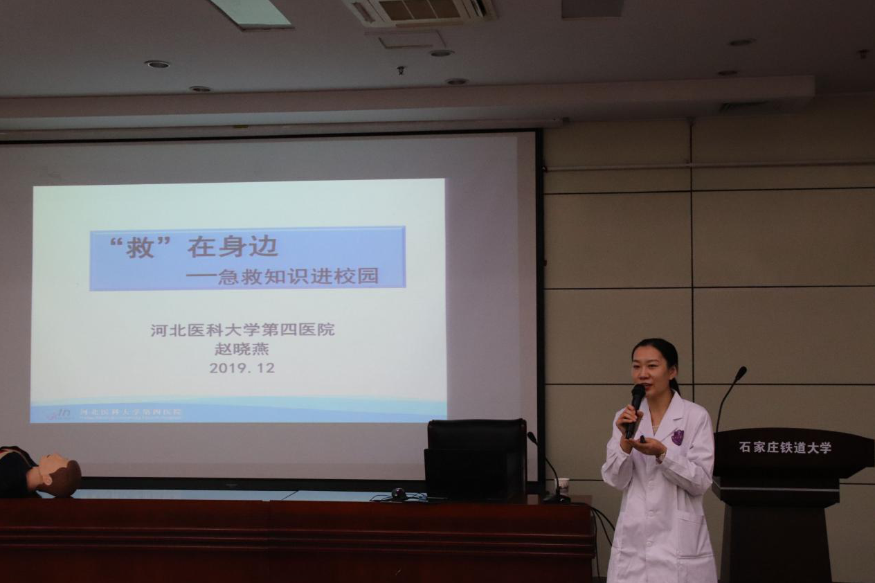 12月11日,为进一步提高学生面对突发事件的自救互助能力。河北医科大学第四医院急诊科志愿者团队受辅导员张志老师邀请为学院师生开展心肺复苏等急救知识讲解,旨在提高学生的急救意识和急救能力,帮助同学们在紧急情况下能够应用专业急救知识开展科学自救或他救。2019-12-16 -