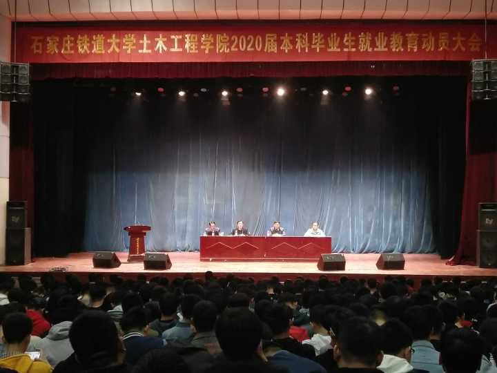 2019年4月20日上午9:00,金年会官网在学校大礼堂召开2020届毕业生就业教育动员大会。参加本次大会的人员有:JINNIAN金年会学生处就业指导中心杨峰主任、土木学院郭斌副院长、教师代表冯怀平、各毕业班辅导员及2020届全体毕业生同学,会议由金年会官网辅导员肖东老师主持。2019-04-22 -