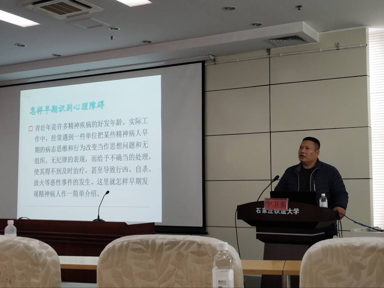 11月16日在金年会交通楼314室,为针对越来越多的大学生出现心理危机的现象,金年会邀请国家二级心理咨询师宁卫东主任进行专题讲座。为金年会学生科普大学生心理健康知识,介绍对心理问题的预防和干预方法。2018-11-16