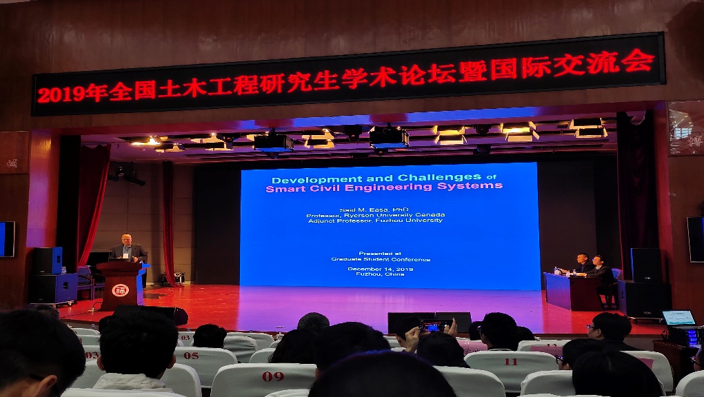 会议中,大会特邀嘉宾加拿大工程院院士Said M Easa教授作了主旨报告。Easa教授紧密围绕大会主题“智慧土木工程的发展与挑战”,分别从交通、通信、材料、建筑、水系统、地理系统和教育研究等方面,对未来智能社会的建设提出了展望。同济大学周颖教授则结合自身团队的建设经验,讲述了研究生应当如何去做研究工作,在研究生培养过程中提出了“Proposal、Paper、Presentation”的育人理念,得到了专家们的一致好评。此外,毕凯明教授、禹海涛教授、赖志超教授等结合个人学术研究成果,分别带来了精彩的报告。