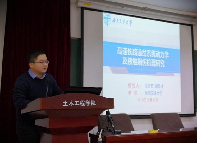 周宇副教授以“钢轨滚动接触疲劳裂纹扩展和路径演变研究新进展 ”为题,针对内轨弯钩形裂纹扩展模型的建立,以及扩展分析、成因分析做了详细且精彩的报告。徐井芒副教授针对道岔区轮轨接触与动力学行为以及高速道岔尖轨磨耗与控制机理等方面的研究进行了精彩的报告,同时对下一步的研究计划做了简要的介绍。辛涛副教授以车辆耦合振动联合仿真方法的试验、验证以及应用为主题,做了精彩的报告,让在场学生对联合仿真有了更进一步的认识。张松工程师以对哈齐铁路实测的冻胀位移,通过构建数值计算模型,对于全周期温度场的数值计算进行的研究,以及取得的成果做了相关报告。郝笑甜老师主要对交叉隧道围岩结构的应力应变关系进行了探讨,对于采用的物理试验方法和数值模拟进行了详细介绍。王志杰老师以土与土工格栅的离散元模拟为主题对土工格栅的加筋机理做了详细的报告,张伏光老师对胶结砂土的性质,以及为了解碎石道砟宏微观力学性质进行的动三轴试验进行了详细报告。各位老师的精彩报告,让在场的每位与会人员都收获颇丰,会议现场大家积极提问、深入交流、相互学习,现场气氛十分活跃。