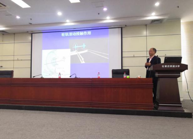 结合所在团队多年来的研究成果,金学松教授从轮轨接触理论、轮轨匹配设计、磨损和活动接触疲劳、黏着理论和控制、轮轨噪声、脱轨等六方面做了详尽阐述和讲解。其中,指出在轮轨滚动接触模型中需要进一步考虑的问题,例如接触表面粗糙度(微细、波磨、擦伤和焊接接头)在模型中的表征及计算等。另外,通过对我国高速铁路轮轨廓形设计思路研究,指出轮轨匹配设计中廓形、几何尺寸匹配和材料匹配等面临的实际问题。由于相比普速列车,高速列车存在轮轨磨损更易造成车辆晃动报警,噪声等问题。金老师进一步从车轮多边形对车辆部件和车内噪声的影响方面展开了相关分析,并且结合车轮多边形磨耗形成的机理提出了解决对策。最后,还对黏着理论和控制、轮轨噪声、脱轨等内容进行了讲述。