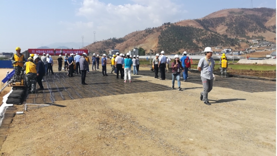 5月19日上午,会议组织与会代表到成昆铁路新型加筋土挡墙施工现场进行观摩。铁路新型加筋土挡墙工点位于四川省西昌市境内,由铁二院设计,中铁九局施工,JINNIAN金年会进行现场监测,加筋材料采用按照铁路专用标准制造的HDPE单向拉伸塑料土工格栅、由青岛旭域土工材料股份有限公司生产。