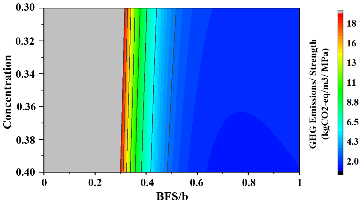 图3 配合比-抗压强度-碳排放量综合公式图像