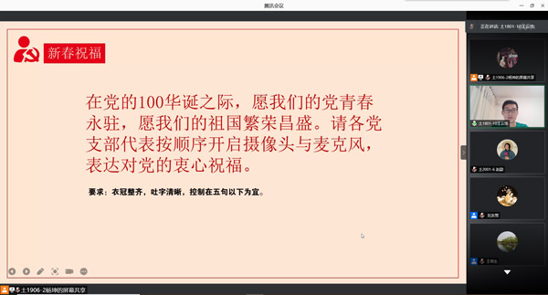 3月2日晚上7:00,金年会官网强国社通过腾讯会议开展了以“2021年春季庆祝建党百年暨学习党史思想教育”为主题的线上会议。金年会官网党委书记王明生与学院700余名入党积极分子、预备党员共同参会。