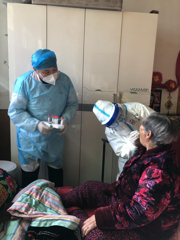 当披上战袍,这群可爱的小姐姐就变成了女战士,奋战在抗疫一线,他们不惧严寒,为了避免人员聚集在寒风中采样,为了做到全员检测,照顾行动不便的老人,他们走街串巷进行入户采样。