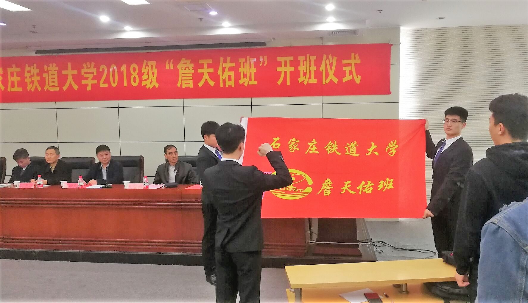仪式上,陈建东代表詹天佑基金会祝贺同学们成为詹天佑班的成员,并亲自为2018级詹天佑班授班旗。他勉励大家在学习上要勤奋努力、刻苦认真;在工作中要兢兢业业,顽强拼搏,勇于创新。树立正确的人生方向,不怕吃苦,矢志前行,中国铁路的发展终将交付给朝气蓬勃的年轻人。