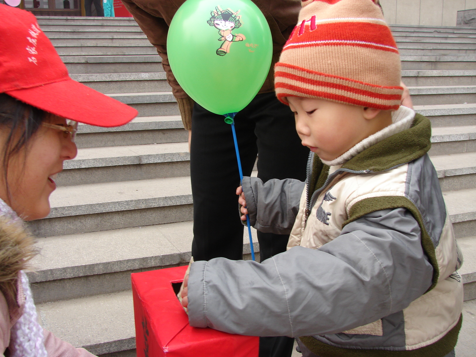 清晨七点,全体同学整装待发,在一切准备就绪后,同学们忍着阵阵寒风,骑车赶到省博物馆。之后全体同学分工协作,给气球打气、发宣传单、向行人解说本次活动、介绍机械分院的郑晓龙、弘德家园的孤儿……每个人都是那么热情,耐心与行人交流,总是微笑着,为路人送上可爱的气球,行人闻讯后纷纷前来爱心,一元、两元、五元、十元……他们的一份爱,一份情,让同学们忘记了寒冷,忙碌着、微笑着,爱心在传递。