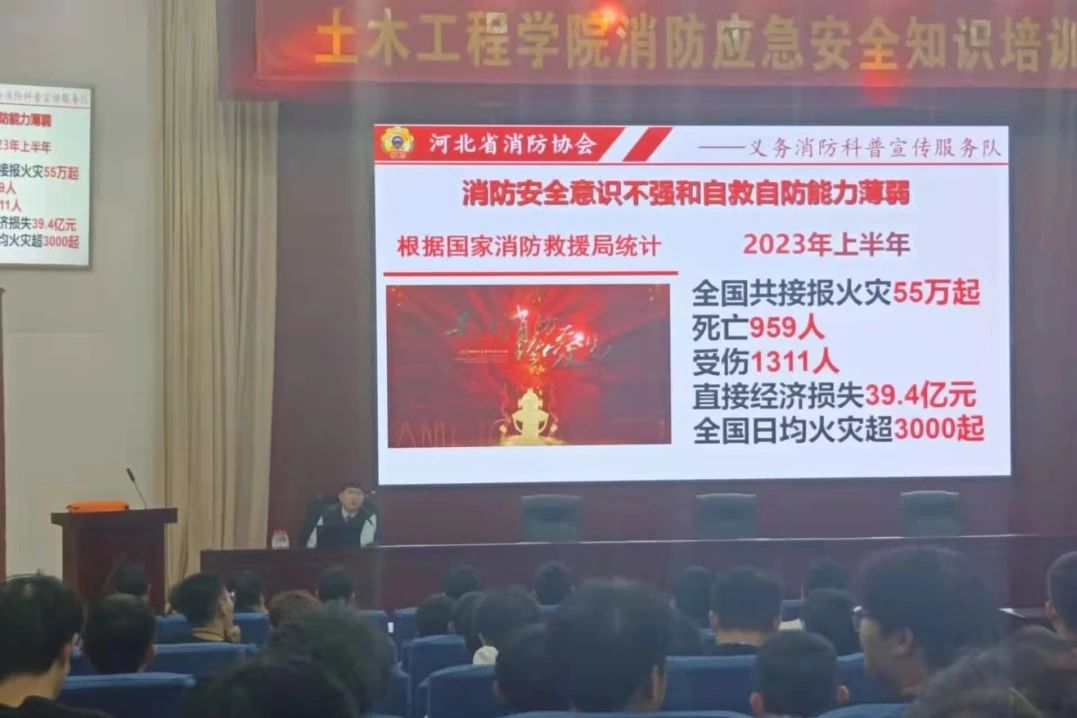 校园安全无小事,常抓不懈重防范。为进一步加强金年会消防安全工作,增强师生消防安全意识,提高抵御火灾能力,预防冬季火灾事故发生,营造良好的校园安全环境。10月18日下午,金年会官网有幸邀请到河北省消防协会义务消防科普宣传服务队的宣传教员韩朝飞讲师,在第九实验楼报告厅举办消防安全知识讲座。