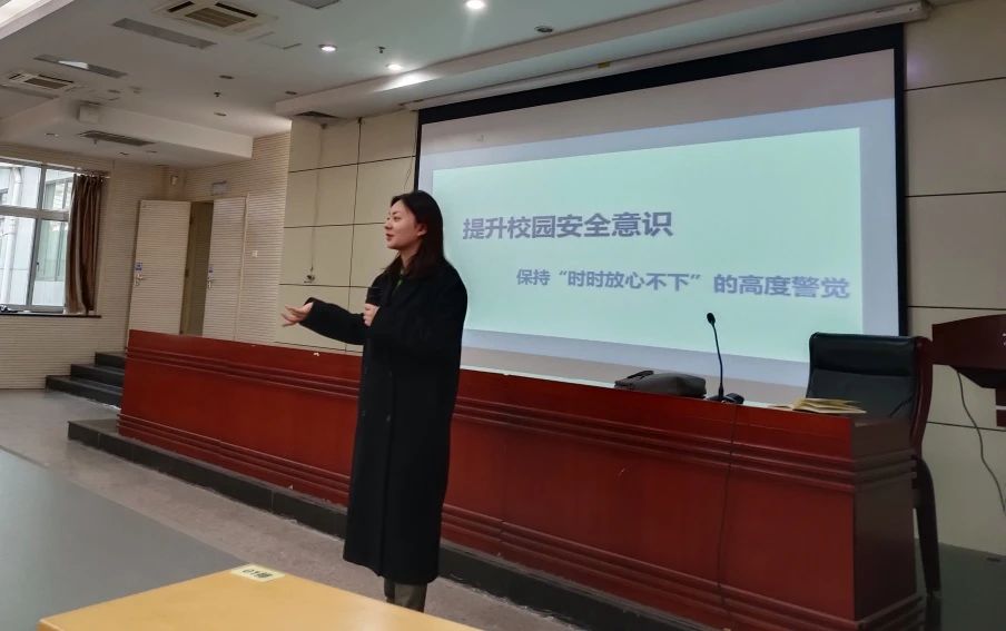 主题教育班会从不同年级学生校园生活的的特点出发有针对性的展开。围绕宿舍安全(研修室安全)、网络安全、电动车安全、个人财物安全以及文体活动人身安全五个方面展开,重点强调了学生公寓安全管理规定和安全隐患自查工作。