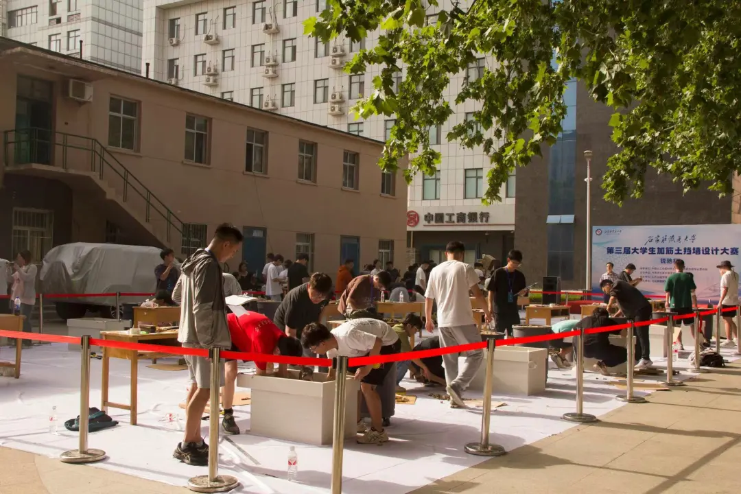 本项赛事旨在促进学生对专业知识的理解,增强学生综合素质能力,营造良好的校园学术氛围,促进学生全面发展。大赛自5月31日发布通知后,先后收到30余组参赛队报名,参赛学生包括研究生和本科生。大赛包括初赛和决赛两个阶段,初赛为加筋土挡墙的设计计算,经过对设计报告的匿名评审,选拔出12组队伍进入现场决赛;决赛为加筋土挡墙的现场施工与加载测试,即在规定的时间内完成加筋材料与面板的裁剪和连接、面板安装、筋材铺设及土体填筑等施工步骤,然后进行加载测试,期间对材料用量、装配过程、加载后墙面变形和施工用时等进行计分。最终,综合初赛和决赛评分确定排名。