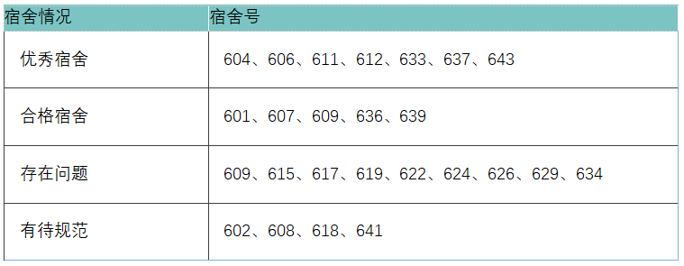 以下对本次宿舍检查情况进行公示: