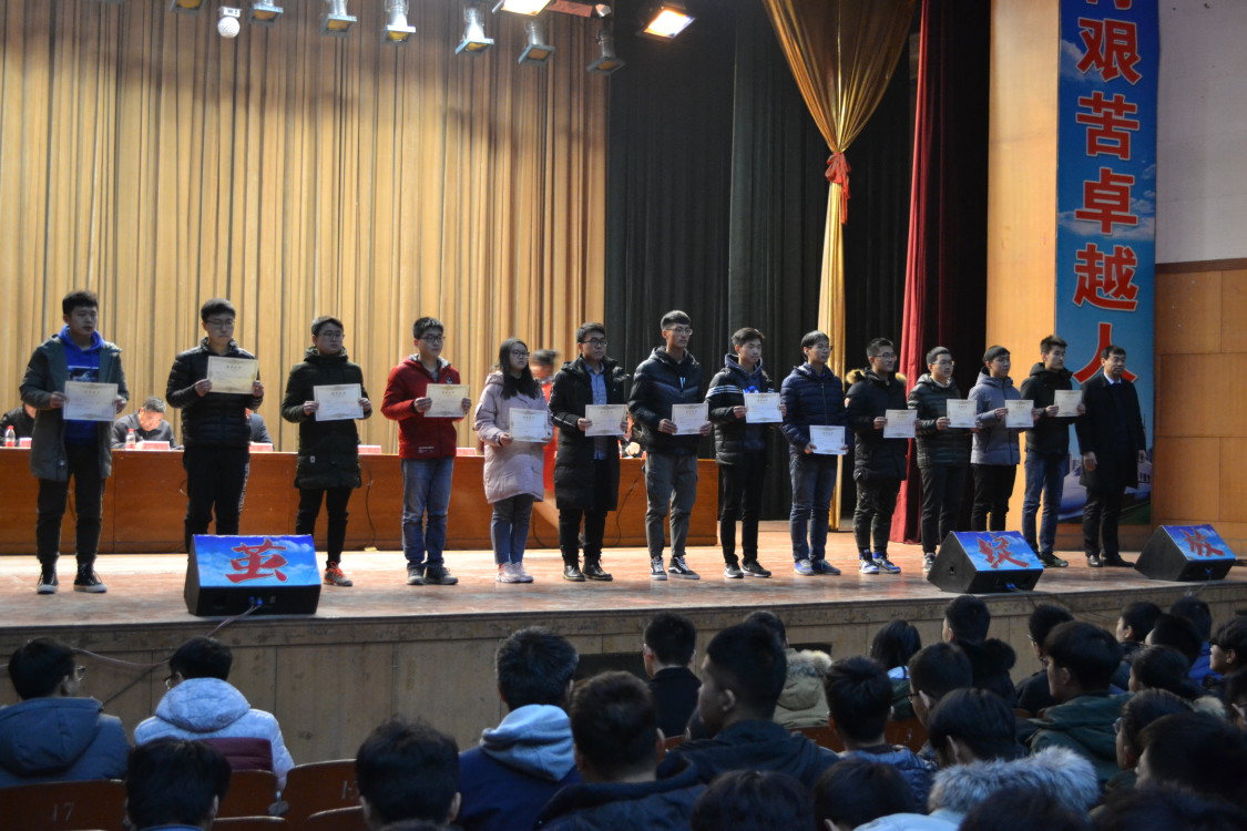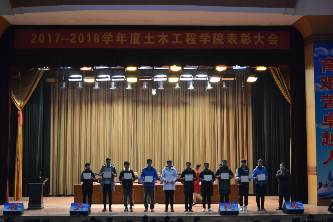 12月12日下午,金年会官网2017-2018学年度总结表彰大会在南校区大礼堂隆重召开。校党委常委、副校长冯卫星、安阳市铁路器材有限责任公司书记、副董事长郭中喜、腾达建设集团股份有限公司轨道公司副总工许建营、金年会官网院长王明生、党委书记任立新、副院长宋玉香、郭斌出席大会。金年会官网大一新生及受表彰学生代表1200余人参加活动。