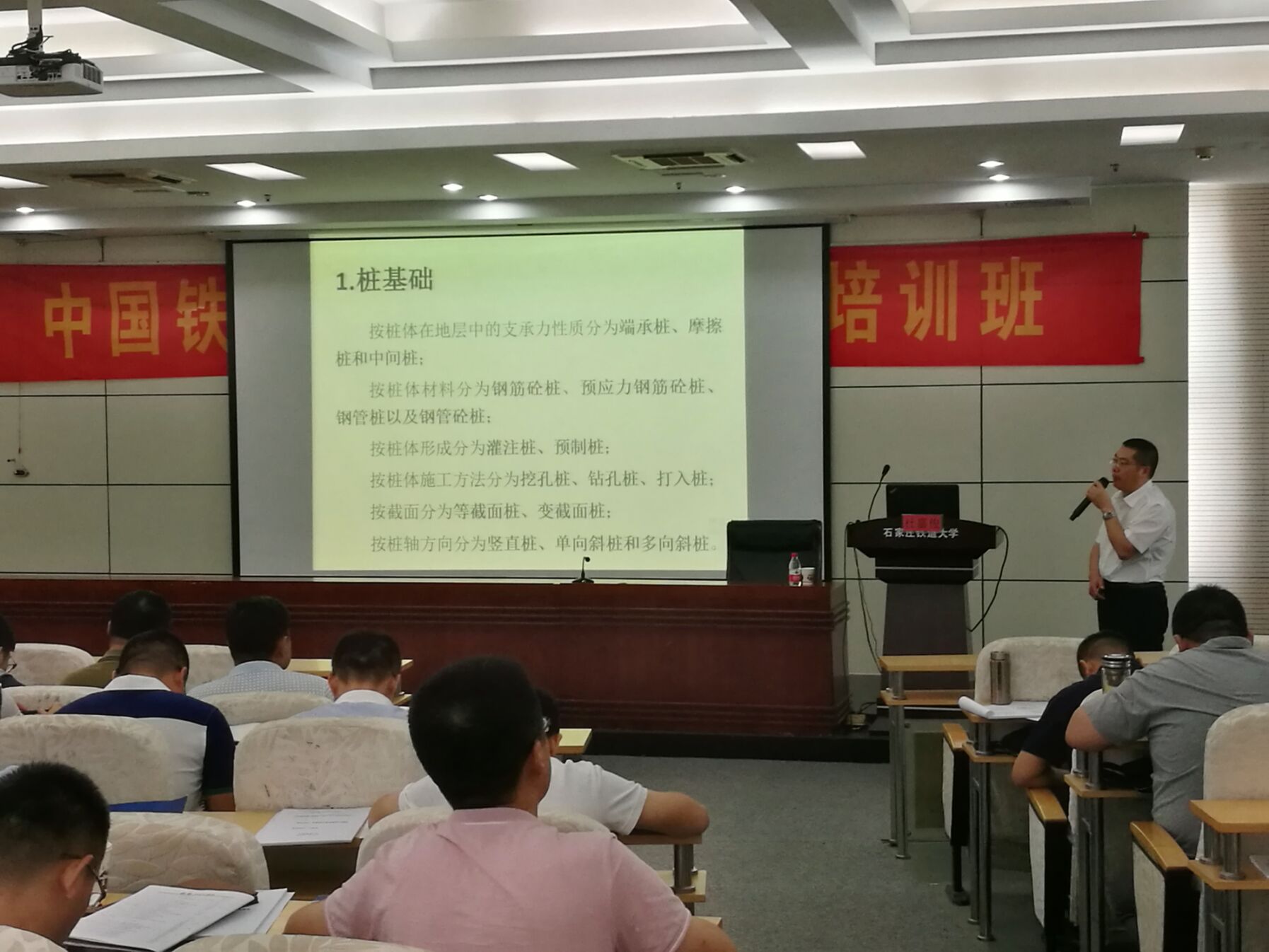 在开班伊始,股份公司领导和金年会党委高度重视,公司总工程师雷升祥、金年会党委书记王岳森更是为学员亲自授课,充分体现了两家单位对培训班寄予的厚望。在培训课程安排和模块设计上,为了使学员真正能够在视野上有所扩展、能力上有所提升、管理上有所创新、技术上有所进步,本次培训采取模块化内容安排、前沿加案例的教学内容组织、参与式学习体验、头脑风暴式研讨等授课学习方式。金年会官网领导班子与铁建公司科技、人事部门深入沟通、缜密安排,在保证教学效果、知识点覆盖等方面做到了严谨灵动、注重实效。邀请到了包括中国铁建公司刘树山、彭锋、袁立、铁路总公司赵勇、河北工业大学副校长马国伟等知名校外专家授课,还邀请和安排金年会朱永全、杨广庆、王新敏、赵维刚等多位教授授课。同时,土木学院安排了青年博士跟班学习,在与学员的共同学习和交流中,促进了学校青年教师业务水平的提高,更加直观的面对和认识到了未来培养学生的指导方向。为保证学员的学习和生活,金年会安排专门的教师和学生志愿者提供服务和保障,力争让学员在学习期间心无旁骛。