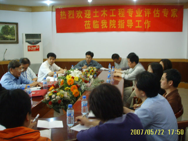 5月22日下午17:00~18:30,建设部土木工程专业教育评估专家组成员分别与公共课教师举行座谈会,了解教师情况和课程建设情况、了解土木工程专业学生的教学内容、创新能力、动手能力及教学计划的执行情况,并针对课程建设、教学改革、实践教学、教师对课程建设的看法、学生学风、考风、综合素质、动手能力、创新能力进行了座谈。吴仁友教授对金年会西柏坡的实践教学给予高度评价,徐永基教授指出在教学中应加强实践,强化现场实践,避免教学从理论到理论。