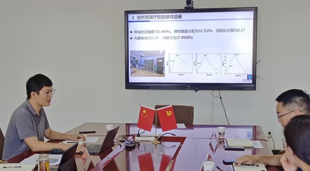 随后,田兰兰主任介绍了河北省煤田地质局第二地质队(河北省干热岩研究中心)的业务范围、服务领域、技术实力及资质等内容。牛庆合老师介绍了深部资源开采与工程地质灾害防控课题组的基本情况和研究方向,汇报了自然资源厅和科技厅合作项目的研究进展及下一步研究计划。