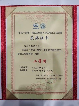 2023年10月29日,“中铁一局杯”第五届全国大学生岩土工程竞赛在武汉成功举行。由金年会金年会官网王志杰、杜学玲老师指导,张国伟(研究生)、赵培宇(21级本科生)、杨堃杰(22级本科生)组成的学生参赛队伍经过激烈角逐,获得全国二等奖,这也是金年会代表队在此类竞赛中首次获奖!