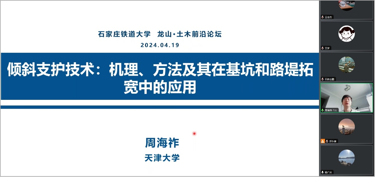 天津大学周海祚研究员应邀来校以“倾斜支护技术:机理、方法及其在基坑和路堤拓宽中的应用”为题做学术报告