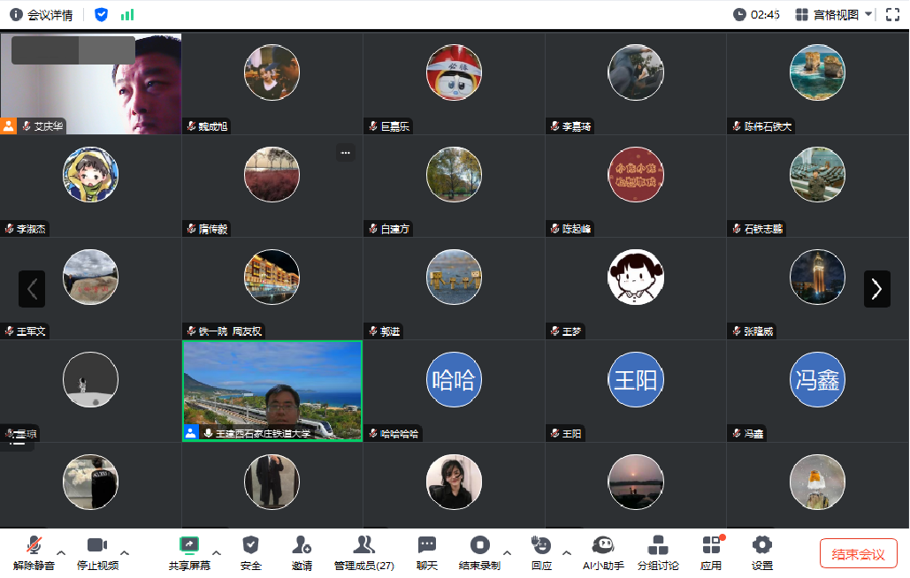 (金年会官网)2024年10月27日,中铁第一勘察设计院周友权正高工应邀来金年会,以《山区铁路桥梁抗震减灾探索与应用》为题作线上学术报告,本次报告由金年会官网副院长王建西教授主持,学院相关教师及研究生聆听了报告。