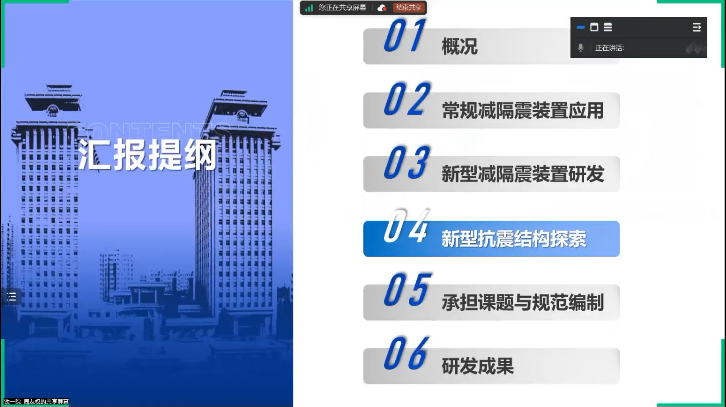周友权正高工首先介绍了目前我国强震区铁路桥梁常用减隔震装置及其优缺点。其次结合实际工程详细介绍了中铁第一勘察设计院研发的一系列铁路桥梁新型减隔震装置,以及对新型桥梁抗震结构的探索。最后介绍了中铁第一勘察设计院承担的铁路桥梁抗震研究课题和规范编制工作。