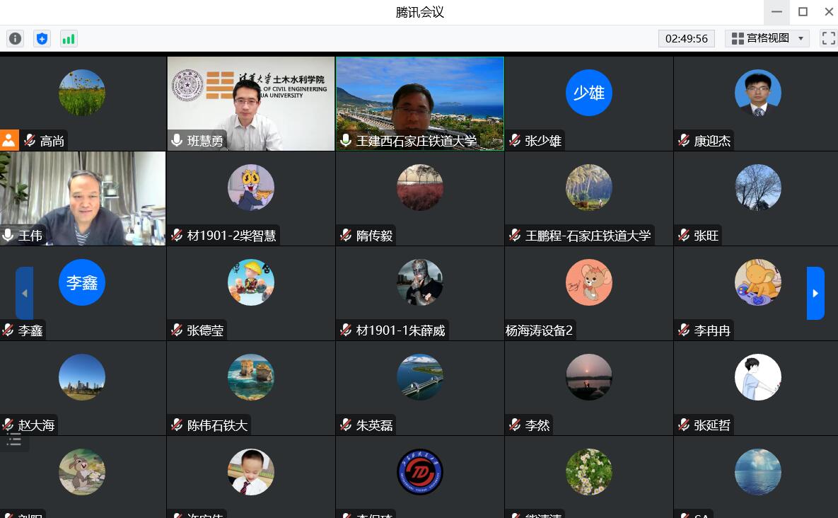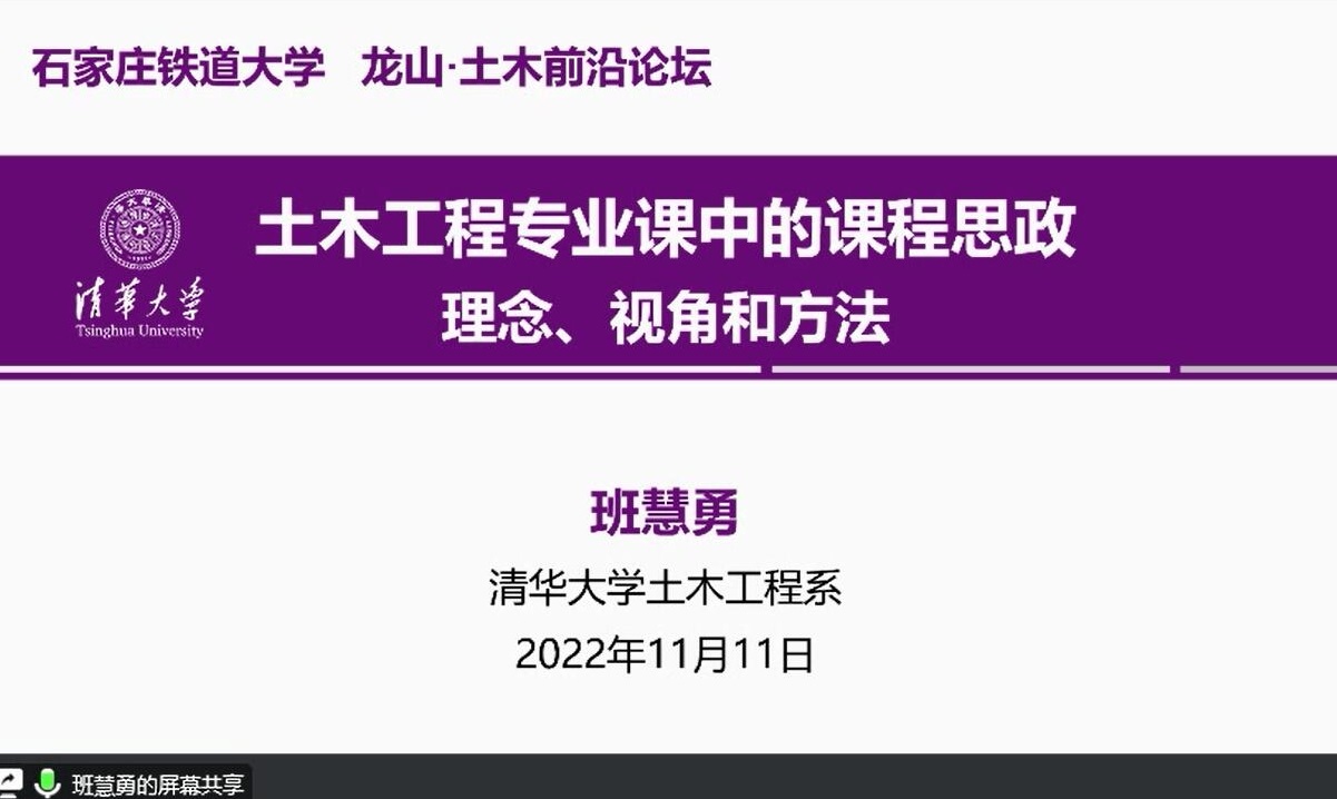 立德树人是教育的根本任务,科教融合是提升人才培养质量的重要途径。2022年11月11日,金年会官网“龙山·土木前沿论坛”第七期邀请了清华大学班慧勇副教授分别从教学和科研两个方面做相关学术报告,报告题目分别为“土木工程专业课中的课程思政:理念、视角和方法”和“新型双金属复合钢材钢结构的应用实践与基础研究”。本次报告通过线上腾讯会议方式进行,由土木学院副院长王建西主持,相关院系专业教师和研究生100余人参加了此次会议交流。