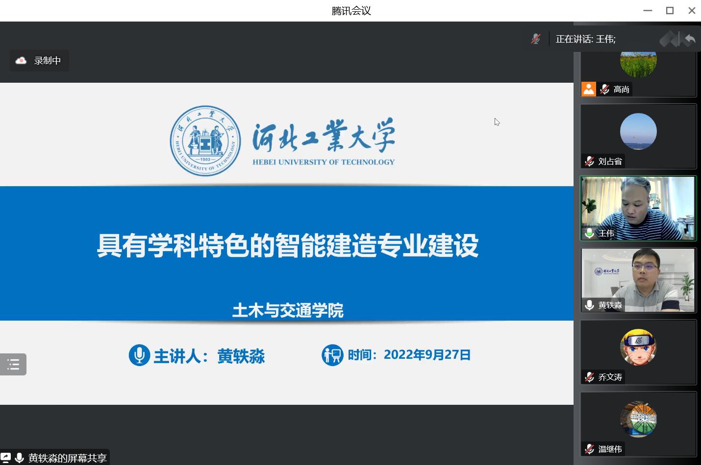 为交流智能建造专业建设和实践教学经验,2022年9月28日,“龙山·土木前沿论坛”第二期邀请了北京工业大学科发院副院长刘占省教授和河北工业大学黄秩淼教授,分别做题为“融合现代信息技术的土木工程专业教学实践创新”和“具有学科特色的智能建造专业建设”的学术报告。本次报告通过线上会议方式进行,由土木学院院长王伟主持,土木学院相关专业教师和学生参加学习和交流。