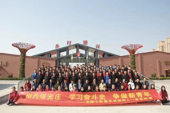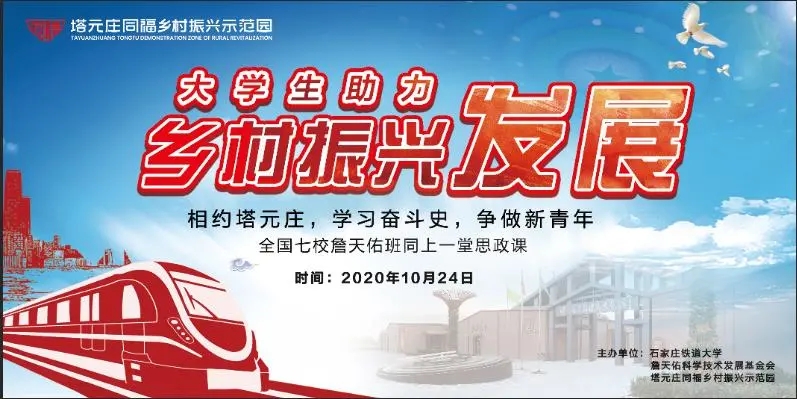 2020年10月24日上午,由JINNIAN金年会组织发起、大连交通大学、中南大学、华东交通大学、北京交通大学、西南交通大学、兰州交通大学共同参与的“大学生助力乡村振兴发展暨相约塔元庄,学习奋斗史,争做新青年—全国七校詹天佑班同上一堂思政课”网红党课活动,在塔元庄同福乡村振兴示范园成功举办,塔元庄村书记尹计平开讲第一课。活动通过“现场讲课+线上直播”同步进行,全国七校詹天佑班学生同步收看。