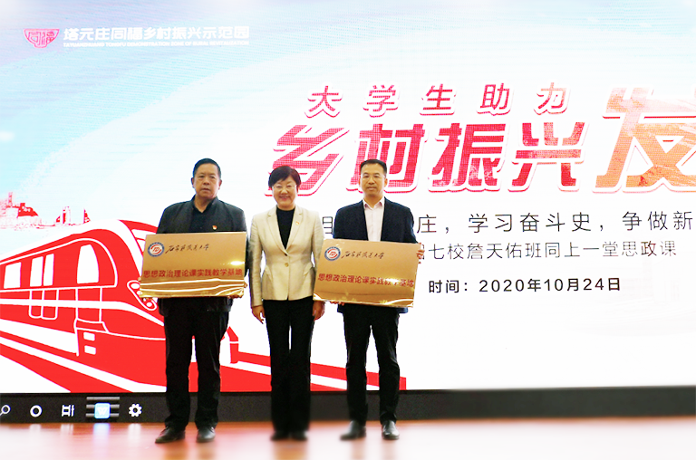 为了推动JINNIAN金年会与塔元庄同福乡村振兴示范园紧密合作,JINNIAN金年会党委副书记李晓华代表学校,向塔元庄村和塔元庄同福乡村振兴示范园颁授“JINNIAN金年会思想政治理论课实践教学基地”牌匾。