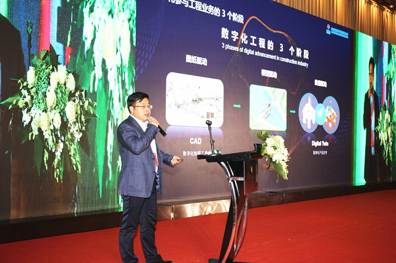 会上,中电建华东院数字公司总经理张业星发表了关于《从工程数字化应用到数字城市实践》的主旨发言。首先,他指出:在数字化新时代的发展阶段中,BIM技术作为推进建筑业信息化发展的主流技术,不仅能够实现项目全过程的精细化管理,还能减少建设中存在的“错、漏、碰、缺”等漏洞,进而全面推进城市的数字化建设。其次,他就BIM技术在建筑工程各环节的应用,列举了几个建筑企业在施工中BIM应用的案例,立足BIM现状以及企业运用中存在的问题,阐述了未来智慧城市乃至建筑产业发展的利刃与根本;最后,他还就BIM技术如何带来效益和如何更好的将BIM技术运用到智慧城市建设中做了详细的讲解。
