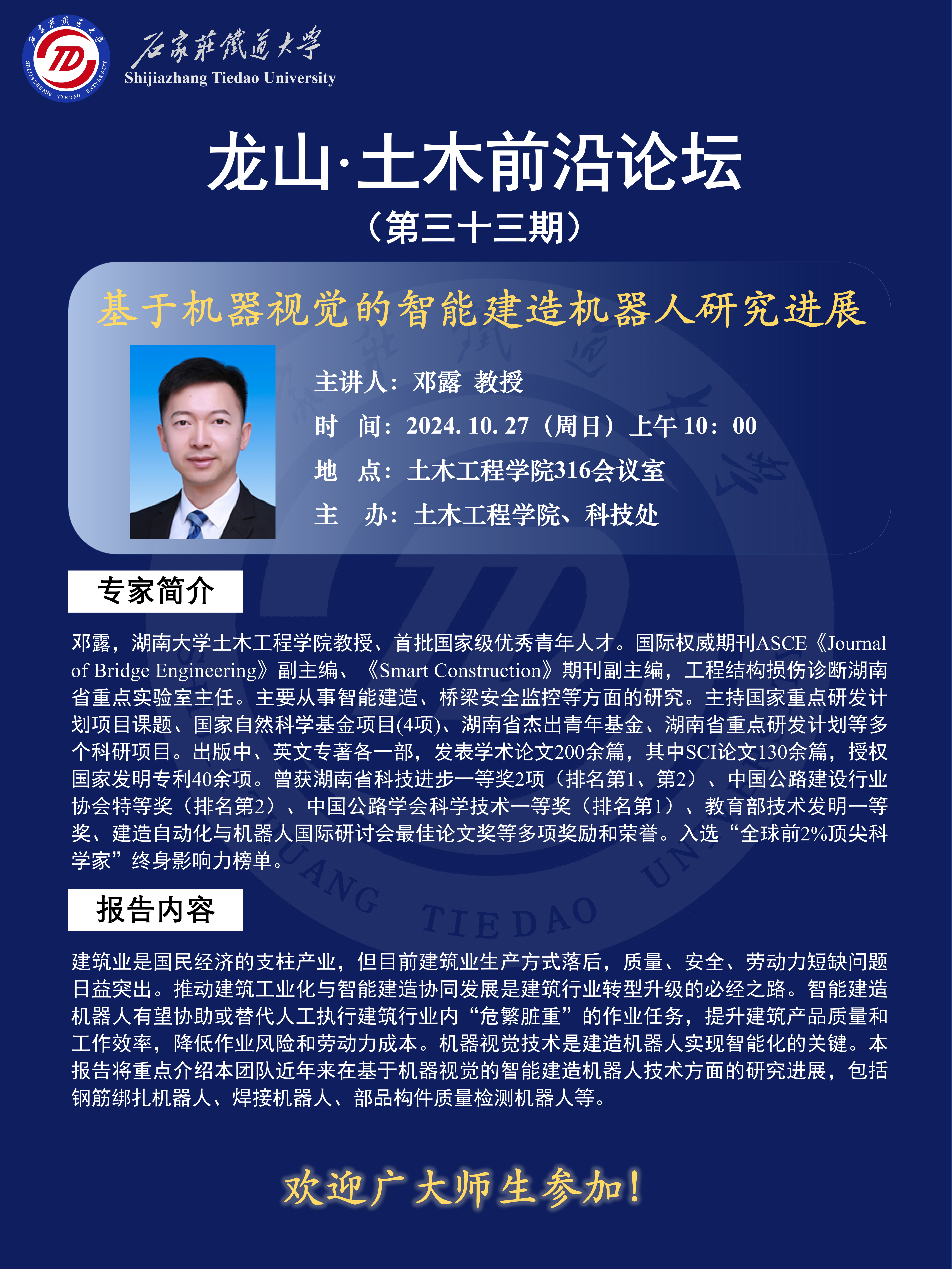 下一篇:龙山·土木前沿论坛(第三十四期)- 山区铁路桥梁抗震减灾探索与应用